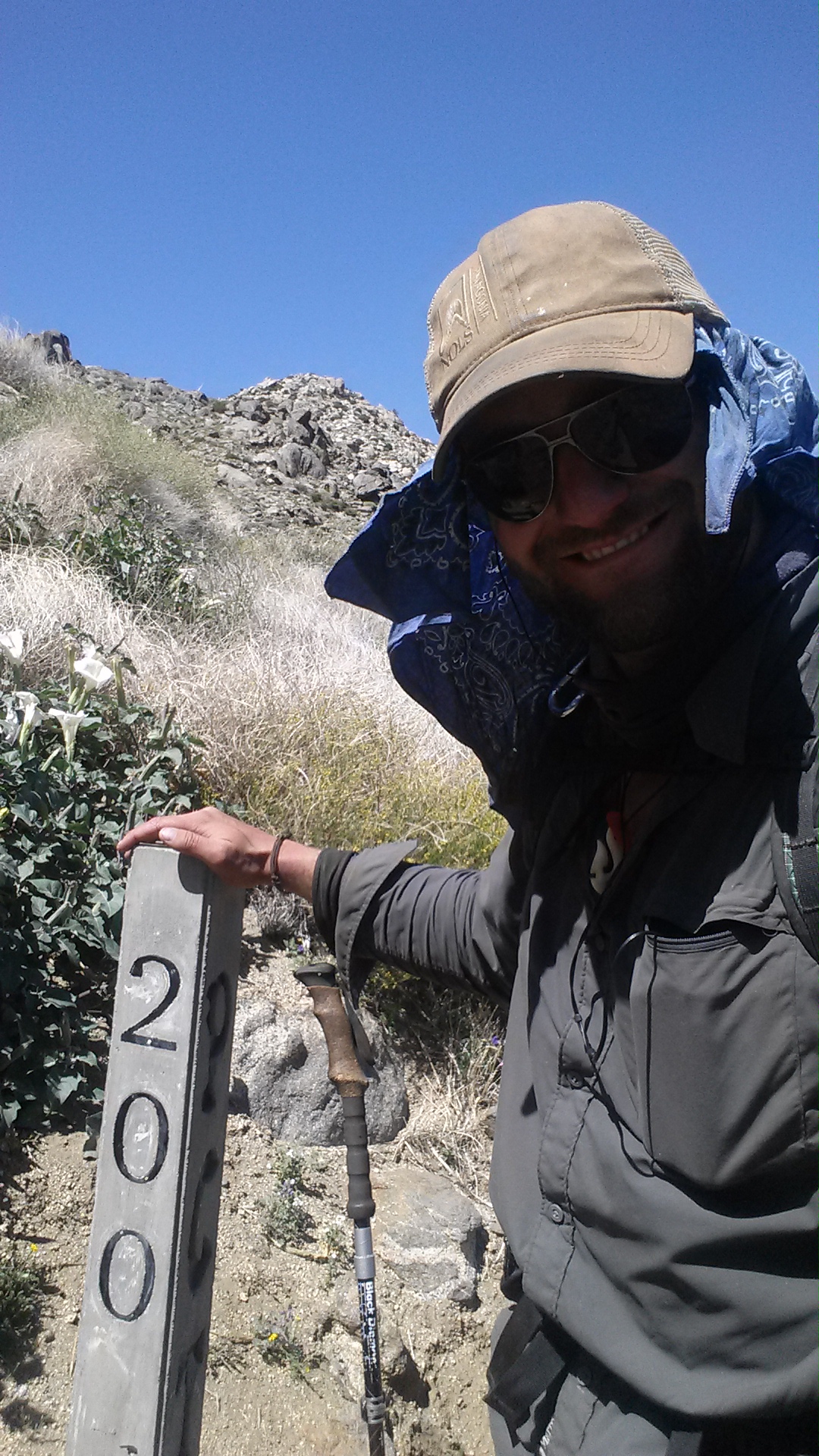 I try to add something extra to my blog posts. Instead of just a slide show of my actions over a period of time, I like to describe the trail, and any experiences that transcend the individual and illustrates what makes walking such an immense distance so worthwhile and beneficial to mind, body, and spirit. However, if Bob Dylan, John Lennon, and Charles Dickens decided to have a child together, that baby would fail if asked to write a kind word about the trail betwixt (OK there is one nice word) Tehachapi and Kennedy Meadows. So instead, for the sake of future hikers, I will give a brief account of this section and maybe brag a bit about a special day I spent hiking…for 43 miles.